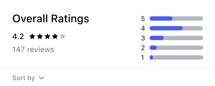 Shows an average star rating with a bar chart for quick context and trust.