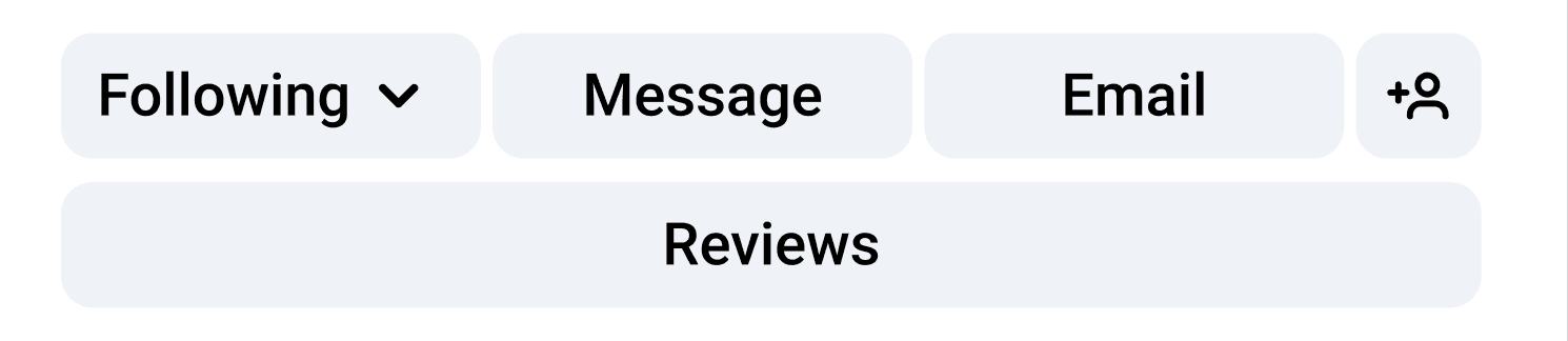 In contrast, the buttons in Option B (e.g., Message, Email, Follow) were seen as action-oriented, focused on initiating communication rather than consuming content. Positioning Reviews in the bottom nav therefore reinforced it as a discoverable content category, not just another interaction button.